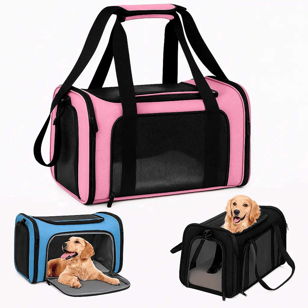 Bolso Transportador para Mascotas – 3 Aperturas, Cómodo y Seguro